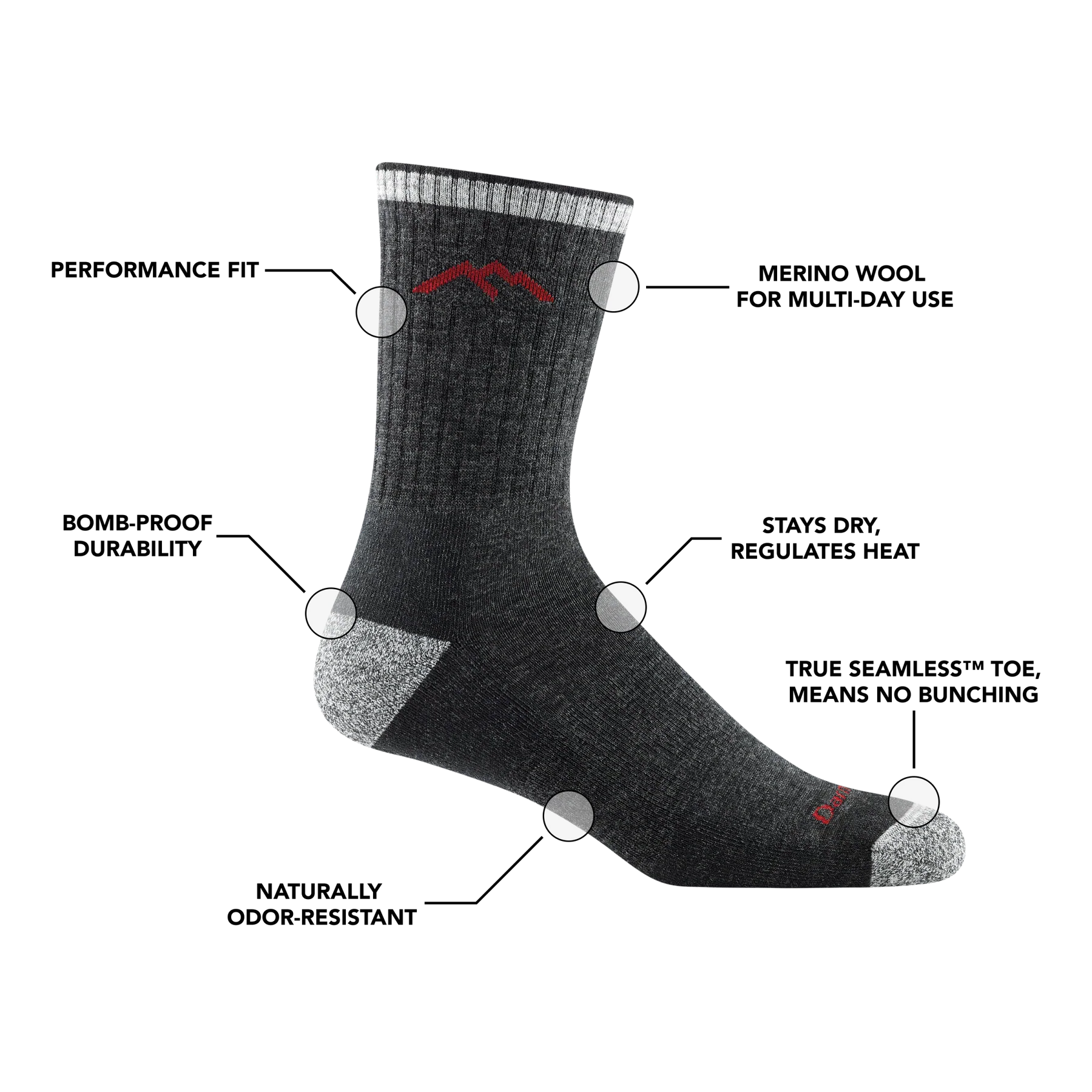 Get ready to hit the trail with Darn Tough’s ultimate hiking sock - built to take on the rigors of the trail. These micro crew hiking socks feature a cushioned footbed with soft terry loops underfoot and offer targeted protection over the ankle and Achilles.